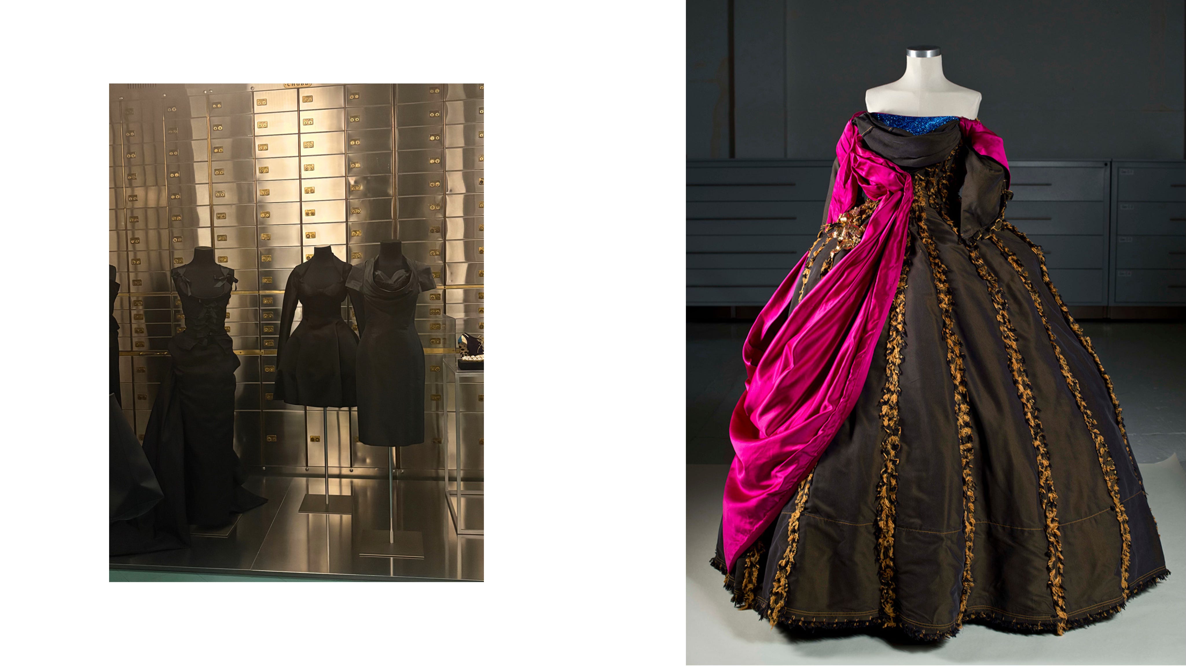 Visual 2 - Collage and photo 3: author. Photo 3 - Vivienne Westwood Gold Label Special Couture. 1998. Bustiers and Pearls exhibition section. MUDE, Francisco Capelo Collection. Photo 4 - Vivienne Westwood Gold Label Couture. Dress Spring/Summer 1998. Tied to the Mast Collection. Silk, metal, precious stones, cotton, tulle. MUDE, Francisco Capelo Collection.